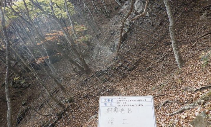 長野県佐久地域振興局林務課発注 工事名 令和6年度災害重点地域総合対策事業第1号工事 工期 令和7年5月01日~令和8年01月30日 山腹工 A=0.17ha 固定工(ロープ伏)3カ所 2386m2 工事成績点 92点